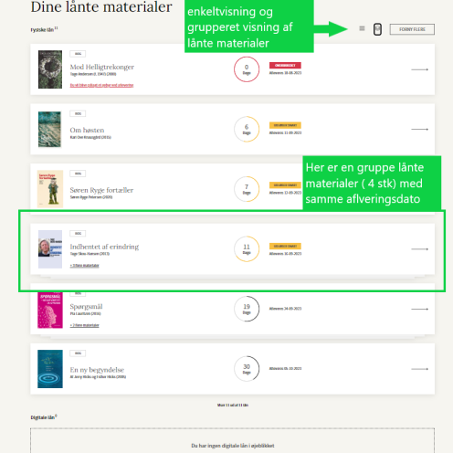 Har du altså flere lån med samme afleveringsdato, kan du vælge at se dem grupperet.