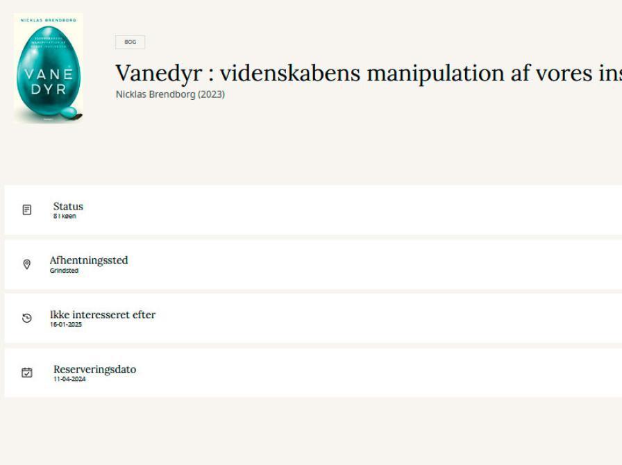 Siden er opdelt i: ”Klar til afhentning”, ”Fysiske reserveringer” og ”Digitale reserveringer”.