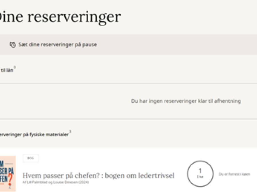Hvis du for eksempel skal ud at rejse og ikke vil risikere, at den længe ventede bog kommer hjem til dig, mens du er væk og ikke kan hente den, kan du sætte dine fysiske reserveringer på pause.